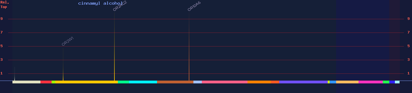 | OR2AG2 | 100 | -6.07 4 | - | sweet, cinnamyl, cinnamon, rose, hyacinth, floral, balsamic, honey | |
