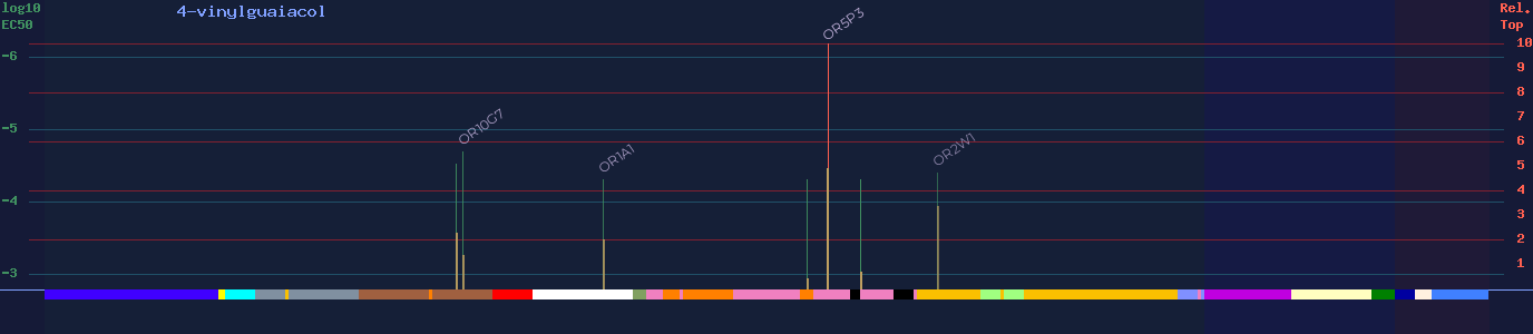 OR10G7 | 80 | -4.7 2 | 1.3333 2 | vanilla, clove, carnation, spicy, smoky | |