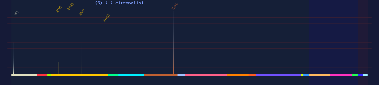 | OR1A1 | 73 | -4.04 2, -5.03 3, -5.03 4 | 9 2, (agonist) 3, 4 4, 2 9 | citrus, waxy, rose, herbal, fresh, sweet, orange, caraway, fatty, spearmint | |