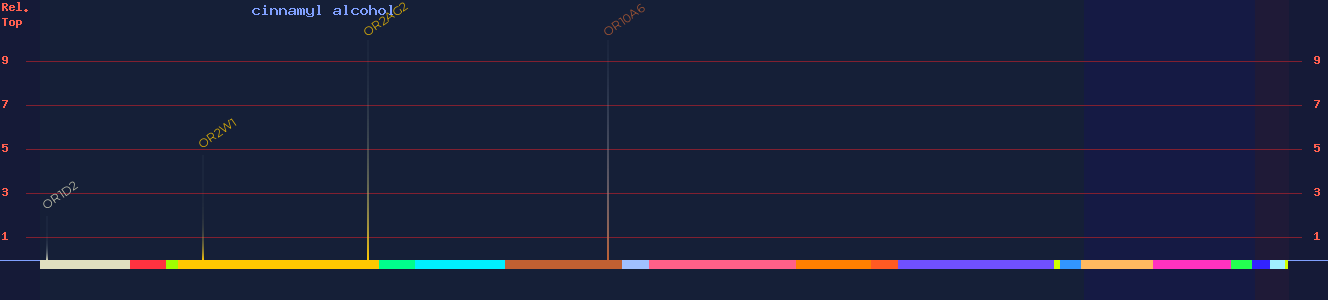| OR2AG2 | 100 | -6.07 4 | - | sweet, cinnamyl, cinnamon, rose, hyacinth, floral, balsamic, honey | |
