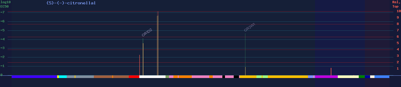 | OR1A1 | 73 | -6.66 4, -6.66 5, -6.66 8 | - | sweet, citrus, fresh, rose, herbal, waxy, orange, spearmint, floral, aldehydic | |